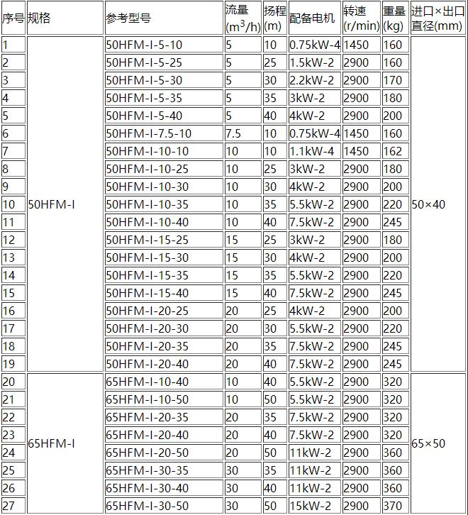 表中配备电机功率是在密度ρ=1时的参考值,实际电机功率应大于轴功率×介质密度ρ。